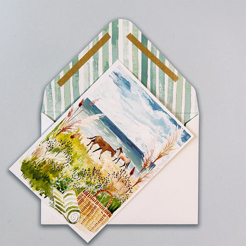 • Main card: printed on 640gm2 paper, includes up to one facet with letterpress or foiling.