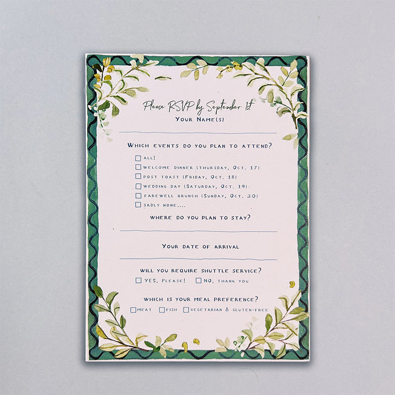 • Envelope: printed on 320gm2 paper, includes digital calligraphy guest addresses.