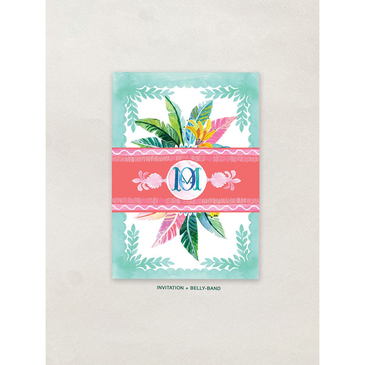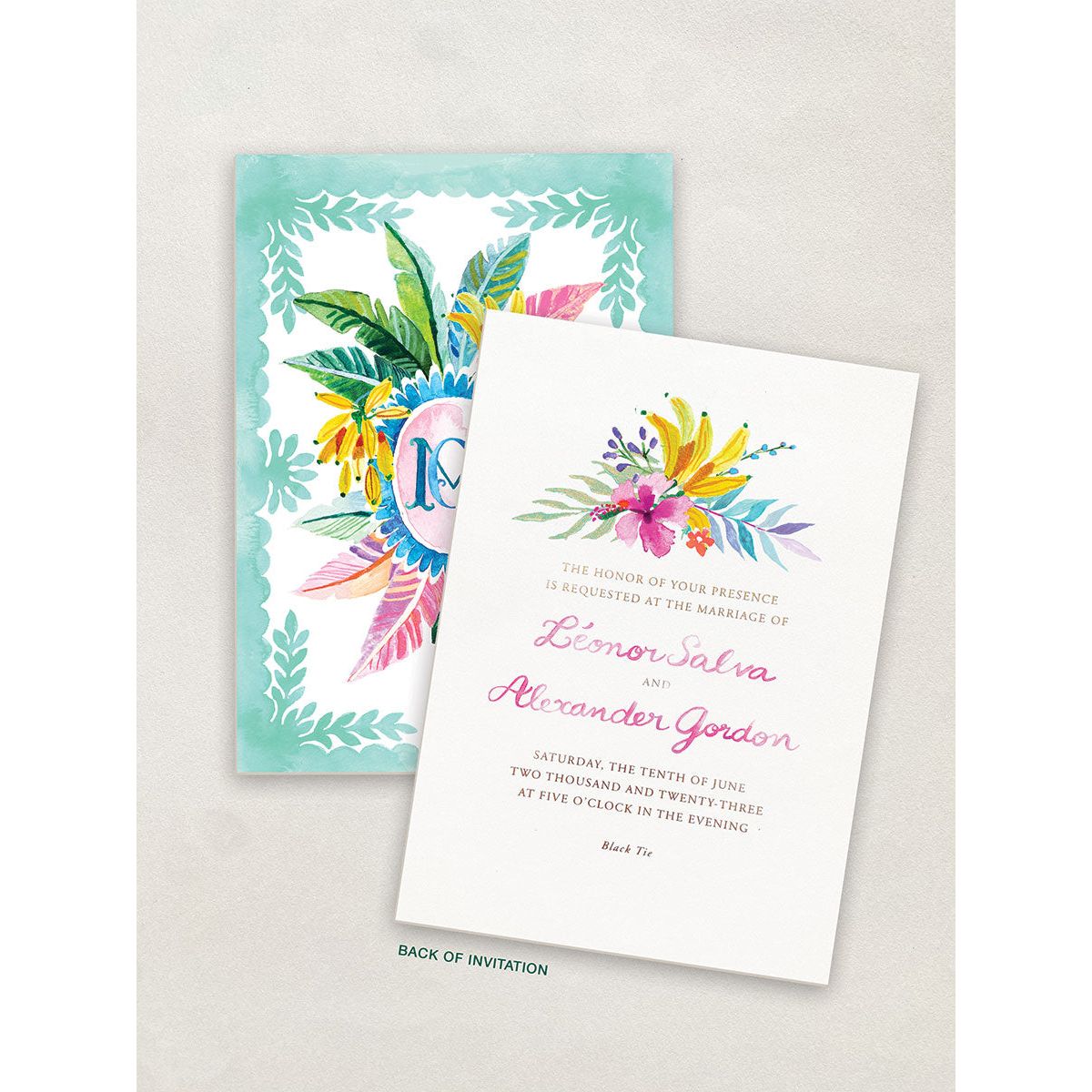 - Main invitation: A5 printed on 640gm2 paper, includes up to one facet with letterpress or foiling.