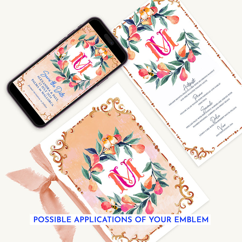 Tenga una identidad visual continua durante todo su evento con un emblema personalizado. El emblema se puede agregar como parte de su sitio web, material de oficina impreso, invitación digital, obsequios para invitados y mucho más.