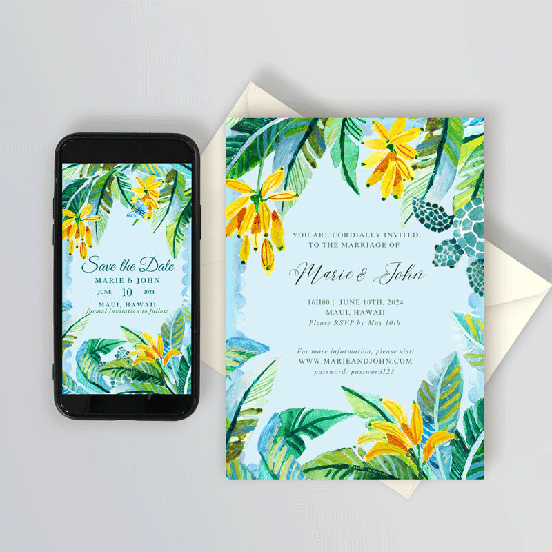Tortuga y Palmas | Plantilla de invitación