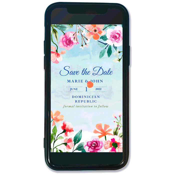 Invitación animada (MP4 o GIF) para usar como parte de tu reserva de fecha, invitación de boda o cumpleaños, tarjeta de agradecimiento, anuncio de nacimiento y mucho más. Disponible como plantilla de invitación personalizable para que la edite inmediatamente o como invitación personalizada interna con nuestro equipo editando el texto por usted. Todo el texto es totalmente editable (fuente, color, tamaño, espaciado...), con opción de mover o eliminar algunos elementos de diseño y agregar música directamente en Canva.