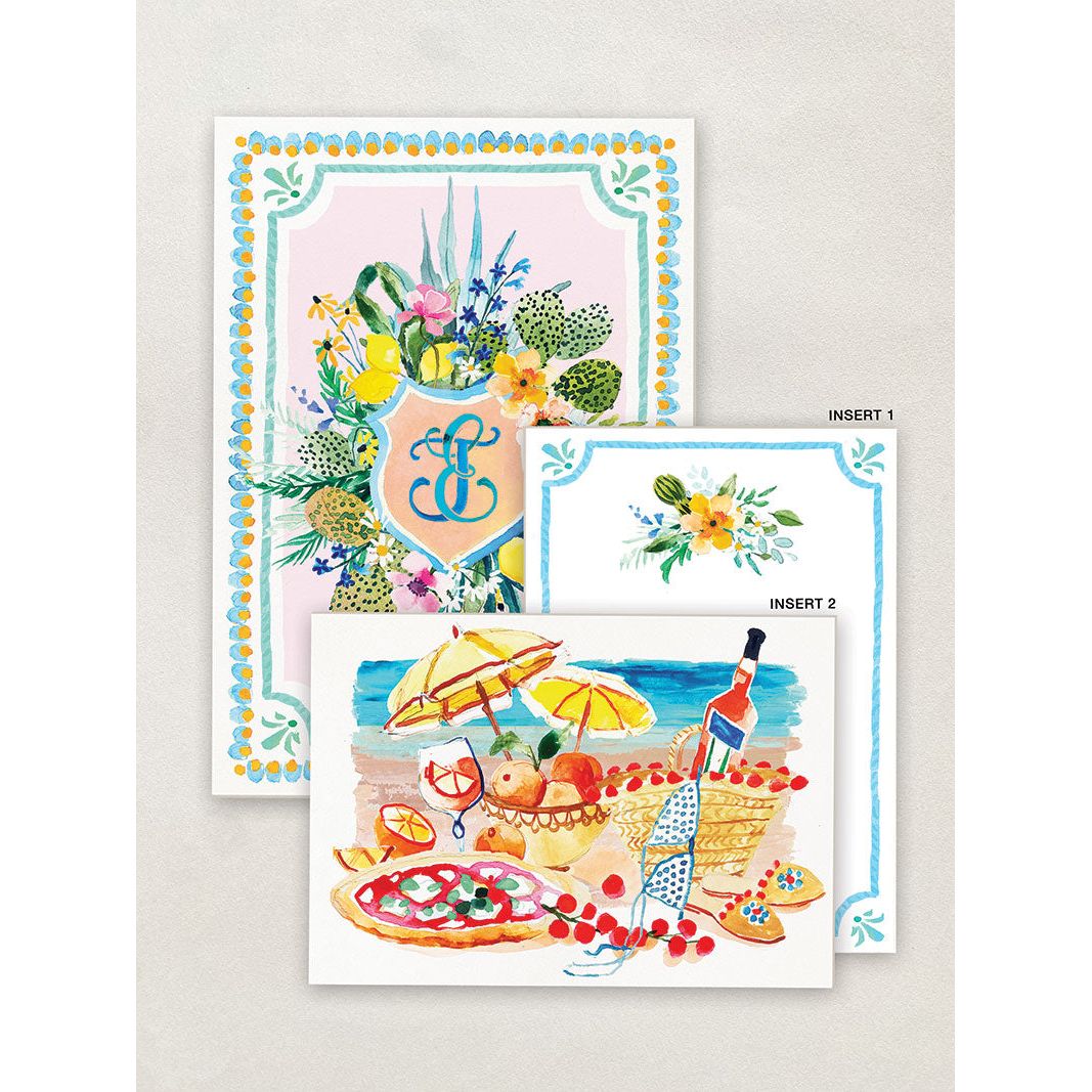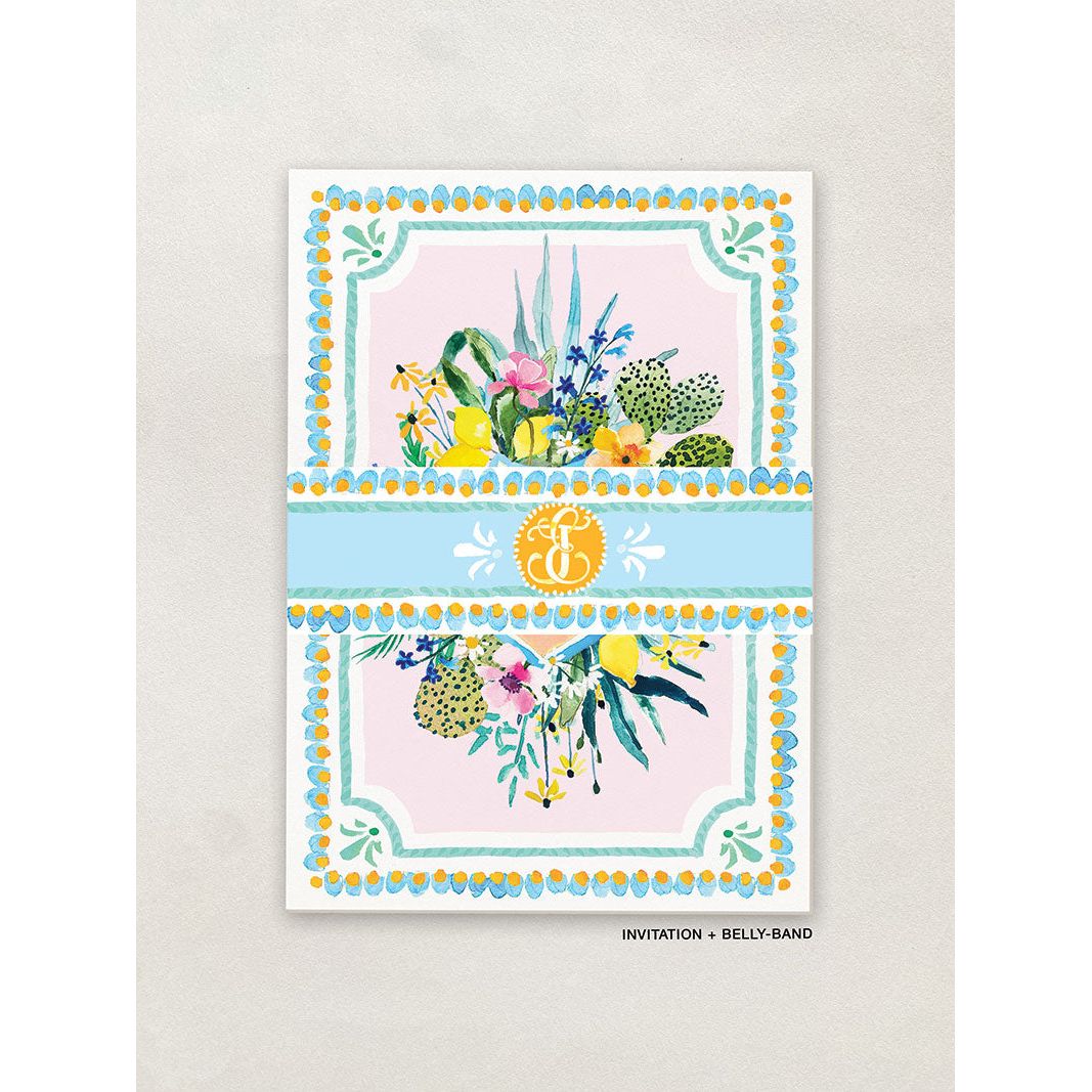 - Main invitation: A5 printed on 640gm2 paper, includes up to one facet with letterpress or foiling.