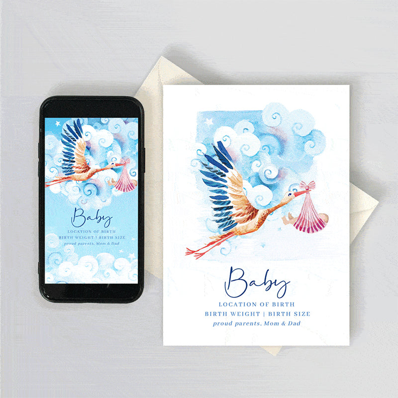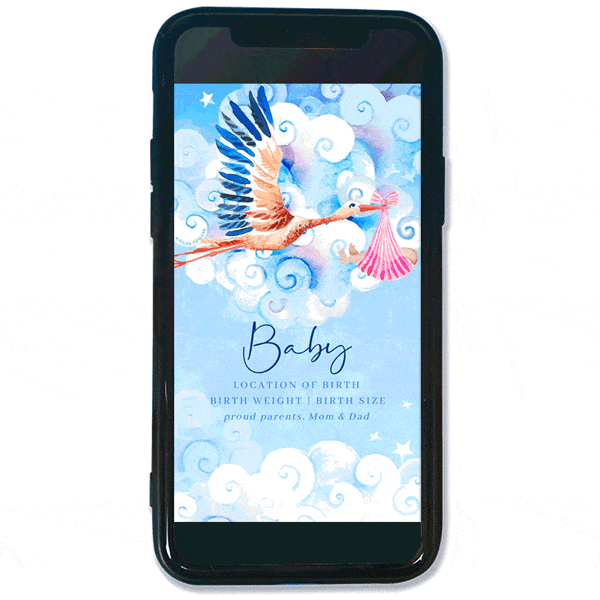Plantilla de anuncio animado (MP4 o GIF) para usar como parte de su revelación de género, anuncio de nacimiento, tarjeta de cumpleaños de su hijo y mucho más.