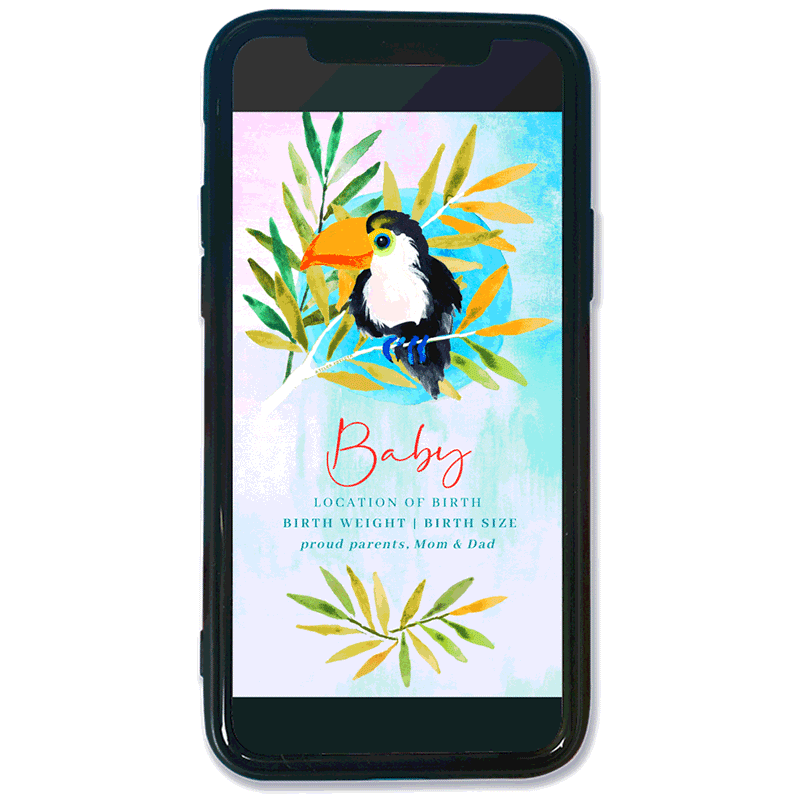 Plantilla de anuncio animado (MP4 o GIF) para usar como parte de su revelación de género, anuncio de nacimiento, tarjeta de cumpleaños de su hijo y mucho más.