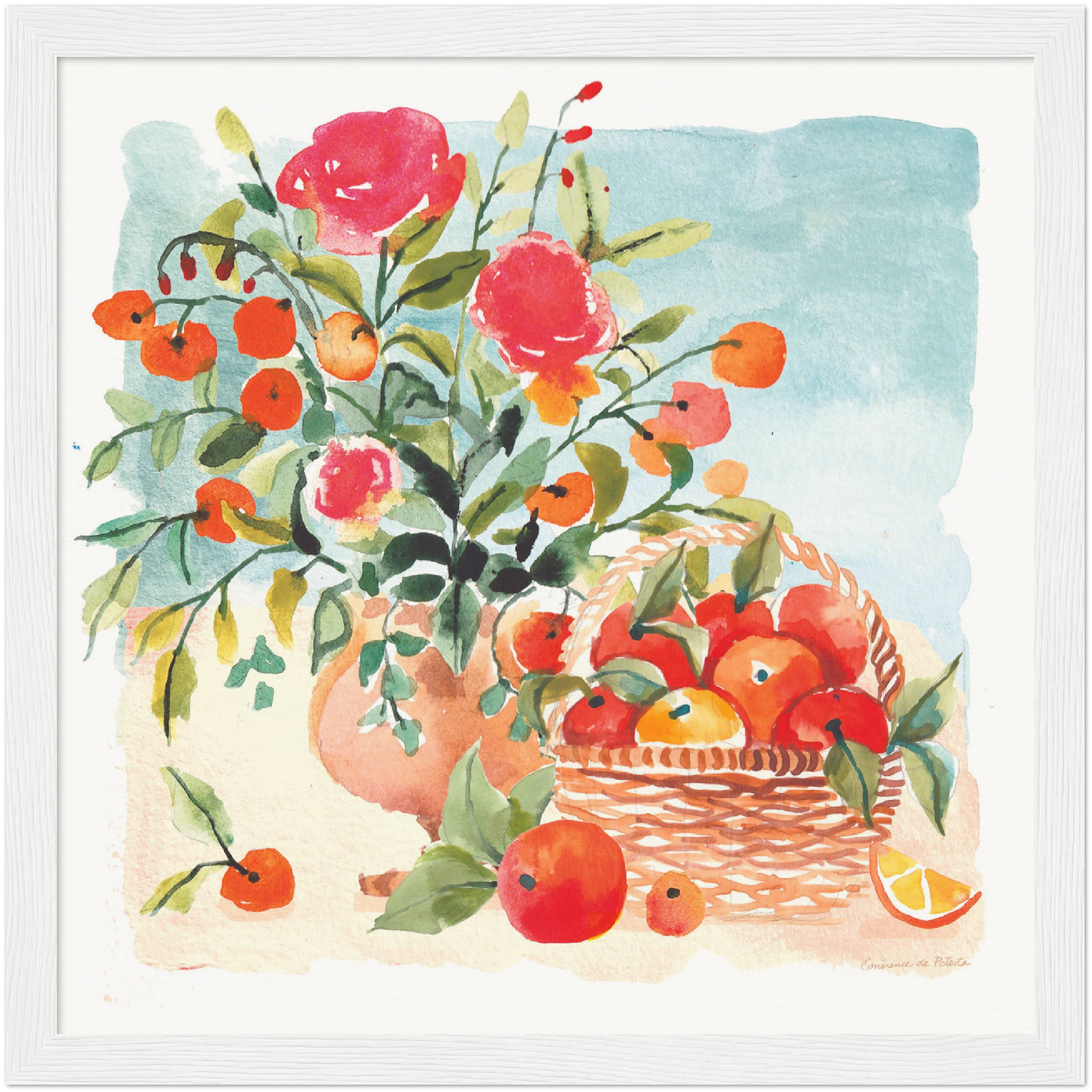 Artwork printed on 250 gsm (110 lb) museum quality paper with matte, uncoated, natural white finish. Option to add a durable frame with plexiglass